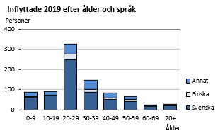 70 procent av de inflyttade 2019 är svenskspråkiga och 60 procent under 30 år
