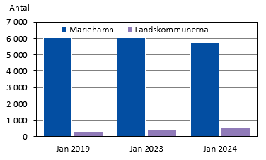 Antalet övernattningar på de åländska hotellen uppgick i januari 2024 till 6 300, vilket var ungefär lika många som under samma månad både 2019 och 2023. Fördelningen av övernattningarna efter gästernas hemland hade dock förändrats så att Sverige i januari 2024 stod för över hälften av övernattningarna efter att i januari 2023 ha haft lika många övernattningar som Finland och i januari 2019 stått för ungefär en tredjedel av alla. Nästan 91 procent av övernattningarna tog plats på hotellen i Mariehamn och drygt 9 procent i landskommunerna, vilket innebar att andelen hotellövernattningar utanför staden ökade med 3–4 procentenheter jämfört med januari 2019 och 2023.